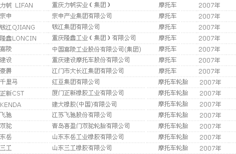 摩托车/摩托车轮胎品牌中国名牌产品名单 |